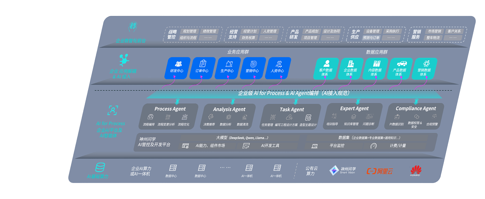 多彩网问学智车解决方案是一套基于AI技术的汽车行业智能化系统,,,,覆盖从底层算力到顶层AI应用的全栈方案。。方案由算力层、、、、模型层和应用层组成:算力层,,方案支持多种一体机配置,,,具备云端灵活部署、、、、多云适配以及动态优化计算资源的能力;模型层,,,多彩网问学平台版提供了企业级AI应用一站式构建与管理平台,,,,支持基于后训练强化技术的汽车企业专属模型的训练、、评测和运营;应用层,,,多彩网问学DeepSeek版提供包括超级员工、、智能招采、、、、智能营销、、、、智能客服、、、AI for BI等一系列解决方案,,,,可助力汽车行业实现数字化转型,,,,让管理更智能、、、、响应更敏捷。。。