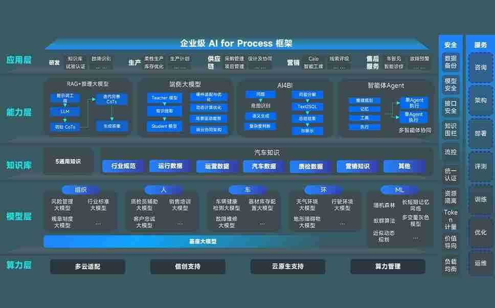 端到端的一站式AI工作空间深度融合了从企业战略规划到日常经营的全流程业务板块,,,定向解决车企内部领域多、、、、部门多、、、链条长、、场景碎片化等难题,,,,支持车企快速构建以AI为核心的生产力写作体系,,,,实现任务执行与AI能力的无缝集成与交互